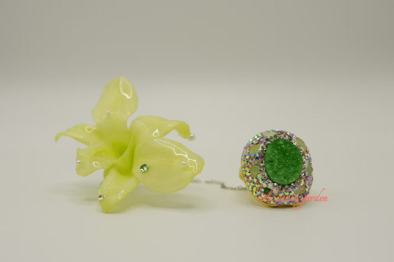 - Material: Green crystal ore, Japanese preserved phalaenopsis, resin